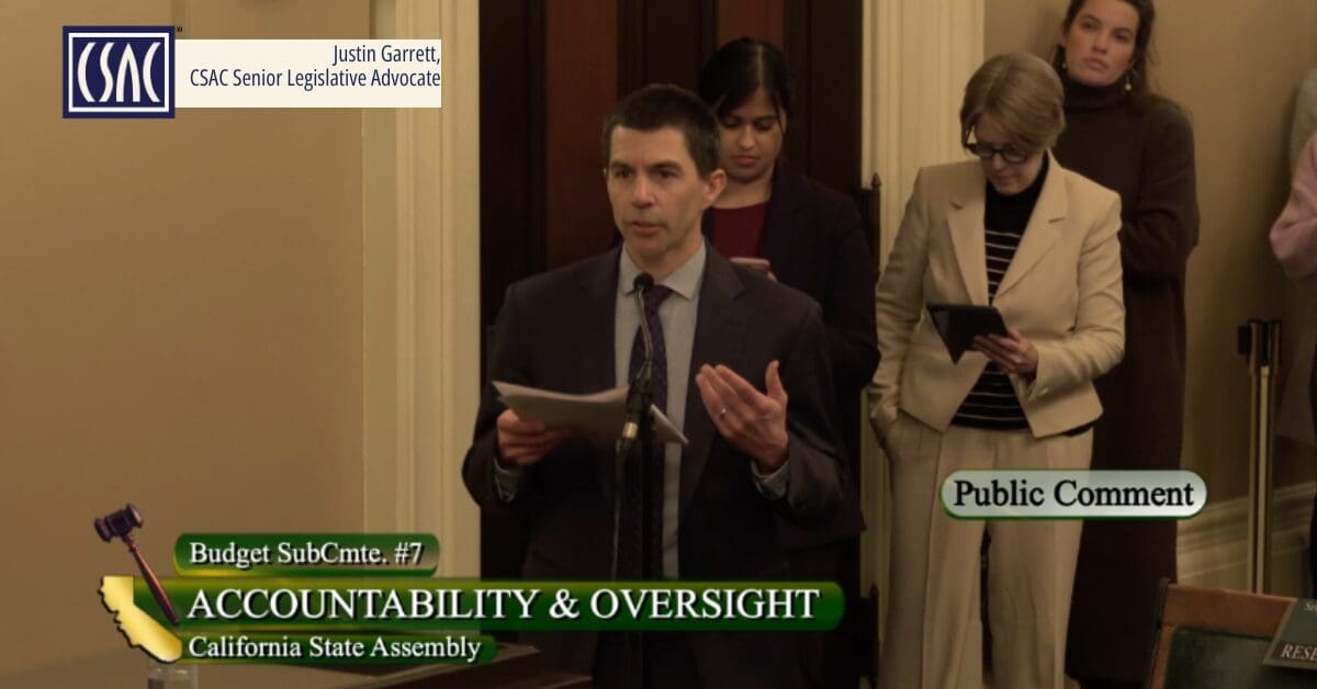 CSAC reinforced the key points made by county panelists and outlined statewide needs at both hearings. “This program is an essential component of our collective efforts and our recent success in reducing homelessness,” said Justin Garrett, CSAC Senior Legislative Advocate for Health & Human Services. “Counties are committed to using HHAP funding urgently, effectively and in a coordinated manner to meet the needs of our communities.”